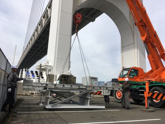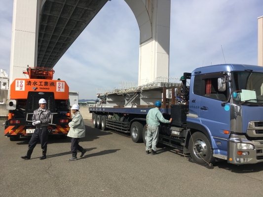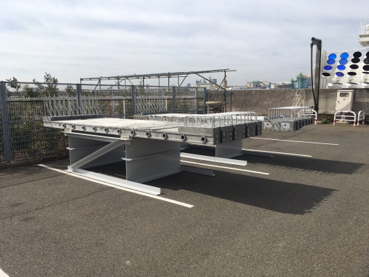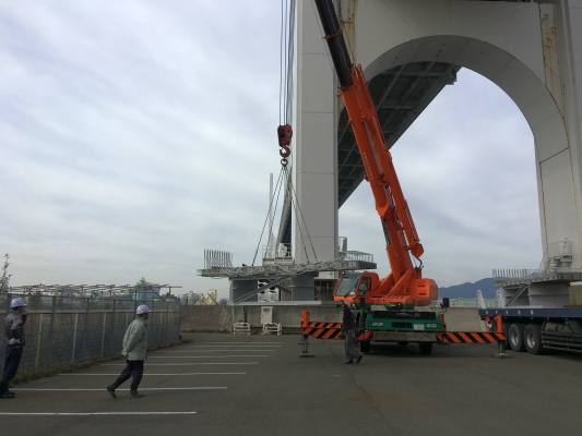 阪神高速道路(株)と鹿島建設(株)による共同研究「軽量かつ耐久性の高いコンクリート系床版の開発」において試験製作した平板型UFC床版を、阪神高速道路・震災資料保管庫前に設置しました。今後の点検等の維持管理の勉強、検討に使用する予定です。