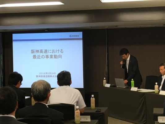 加賀山泰一 幹事長(阪神高速道路株式会社 技術部長)より「阪神高速における最近の事業動向」の題目でご講演頂きました。